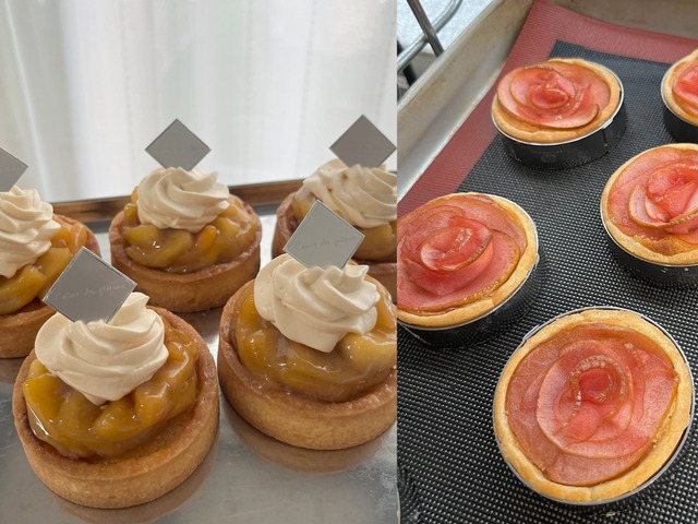 B.季節のタルト BOX ¥2520 季節限定のタルトを詰め合わせました ⚫︎りんごとバニラのローズタルト りんごのコンポートをバラのように仕上げて バニラ香るタルトと焼き上げました。 ⚫︎りんごのキャラメルクリームタルト りんごとキャラメルの 最高の組み合わせ♡ 甘くほろ苦くソテーしたりんごに キャラメルクリームを絞って タルト台には バニラビーンズをたっぷり入れました♪ 各2個 ◎冷凍保存で2週間。 ◎ムース、クリームタルトは解凍後、当日中のお日持ち。 ◎焼きタルトは解凍後、要冷蔵で3日間のお日持ち。 【配送の日程】 ①10/10〜12 ②10/17〜19 ●ご希望時間帯 下記より選んで備考欄にお書きください。 記載のない場合は指定なしで発送させていただきます。 【・午前中(13:00まで) ・14〜16:00 ・16〜18:00 ・18〜20:00 ・19〜21:00】